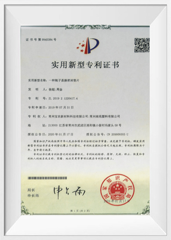Hasznossági minta szabadalmi tanúsítvány